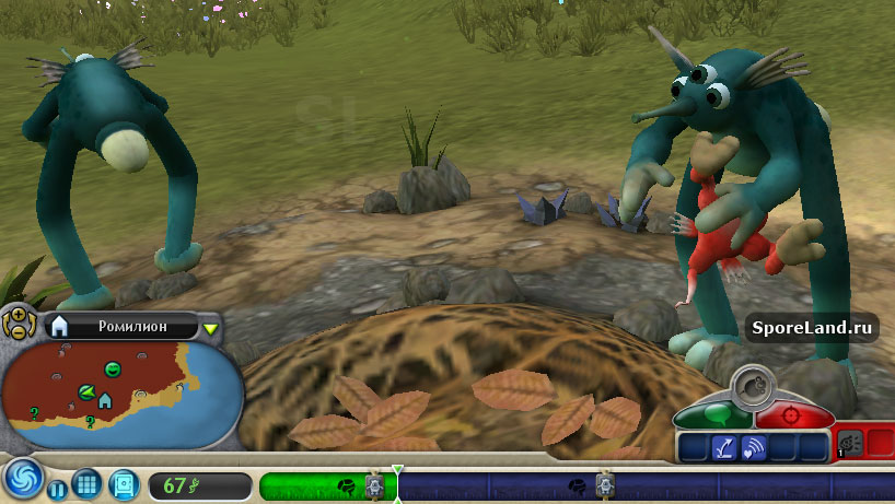 Теперь ваше существо сможет брать в руки, кидать или дарить кому-нибудь существ поменьше. Для этого нужно переключиться в режим нападения и два раза кликнуть по существу, которое вы хотите взять.